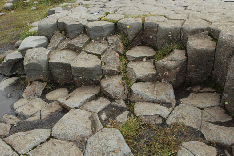C'est lors de la dernière ère glaciaire que l'avancée des glaciers a permis d'éroder les couches supérieures à cet endroit afin d'exposer la surface à hauteur des colonnes, perpendiculairement aux prismes. C'est ce qui explique l'apparence de carrelage hexagonal.