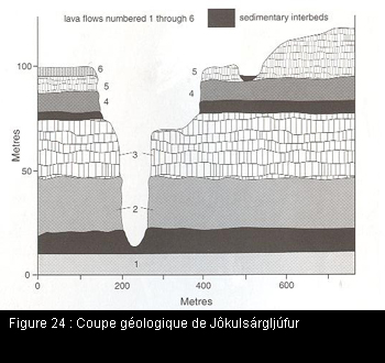 La chute fut formée par l’érosion et l’effondrement de deux importantes coulées basaltiques (figure 24). C’est d’ailleurs cette érosion qui permet d’admirer des orgues basaltiques sur les faces verticales.