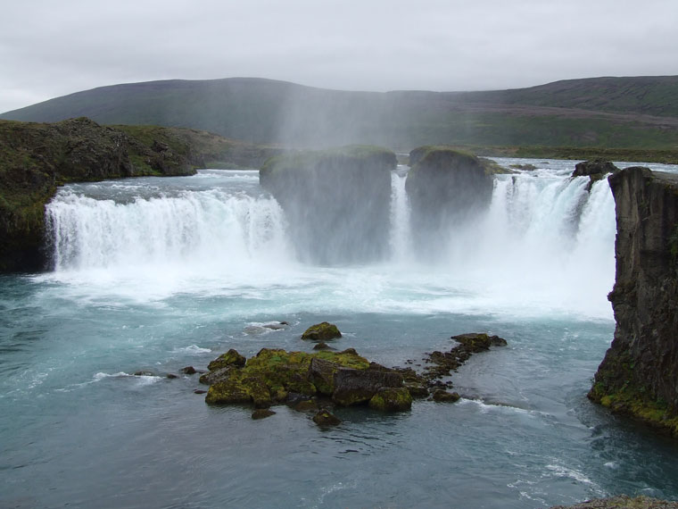 La « Chute des dieux » est localisée sur la route 1 entre Mývatn et Akureyri. Elle est l’une des chutes les plus spectaculaires de l’Islande. Alimentée par le fleuve Skjalfandafljot, la chute de 12 m de hauteur par 30 m de largeur est divisée en trois rameaux. De plus, des colonnes basaltiques sont observables sur le montant de mur des falaises, sur le bord de la rivière où se déverse la chute.