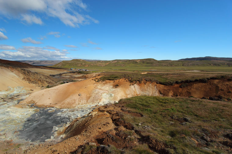 Aussi connu sous le nom de Seltún, le site est une zone géothermale localisée dans la zone fissurale de la dorsale atlantique qui traverse l’île du SO au NE. Par endroits, la température de la surface du sol peut atteindre 100 °C.