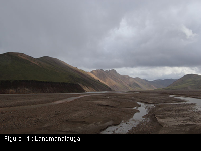 basaltique, il a par la suite eu la plus grande production de magma rhyolitique d’Islande, recouvrant 350 km2, donnant ainsi de saisissants paysages aux couleurs laiteuses jurant avec ceux, basaltiques, plus obscurs ( figure 11). En fait, son ratio rhyolite-basalte est de 4:1, alors qu’il n’est qu’en moyenne que de 1:5 pour les autres volcans centraux d’Islande et même de 1:200 pour les zones extensives. De plus, il y a aussi présence d’un saut compositionnel (59 %-66 % SiO2) dans le magma éjecté qui indique que le magma basaltique provient d’une source profonde alors que le magma rhyolitique provient plutôt d’une source située entre 3-10 km.