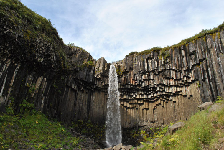 Svartifoss est une chute du parc de Skaftafell, au sud-est de l'Islande, dont le nom signifie « cascade noire ». Ce nom provient de la formation rocheuse dans laquelle elle s'écoule, soit une coulée de lave basaltique noire qui exhibe des colonnades hexagonales très bien formées. Ces basaltes, relativement vieux pour l'âge de l'île, ont vu le sommet de leur coulée érodée, pour ne montrer que la section en colonnes.